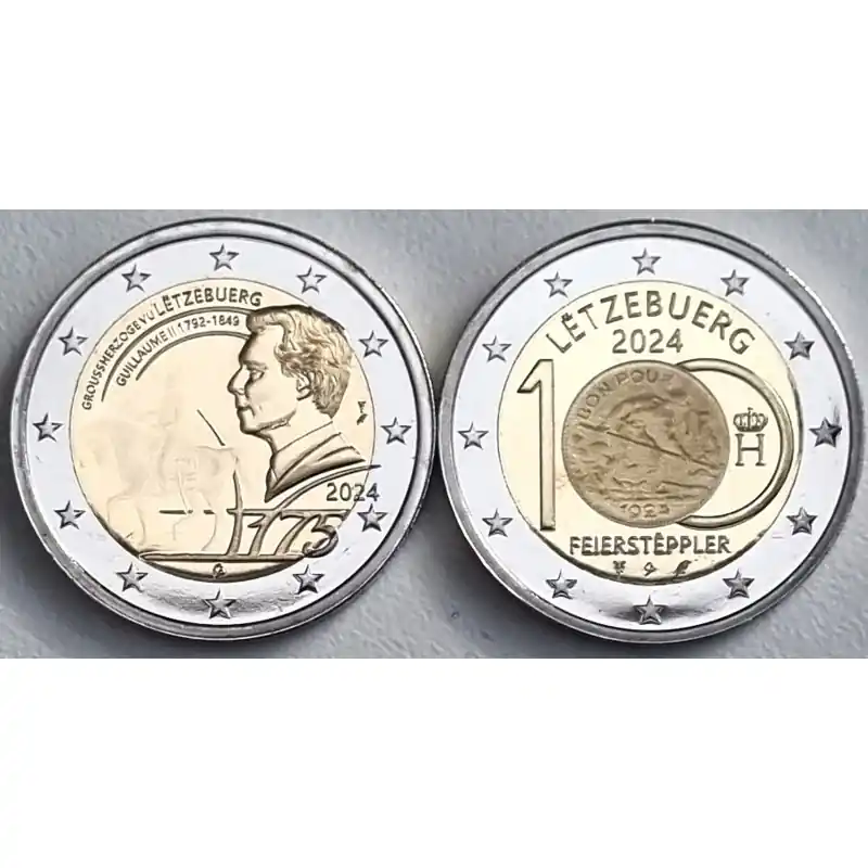2 Euro Luxemburg 2024 ‘Duo 100 jr Gieterij arbeider & Groothertog Willem II Fotoprint’ Unc