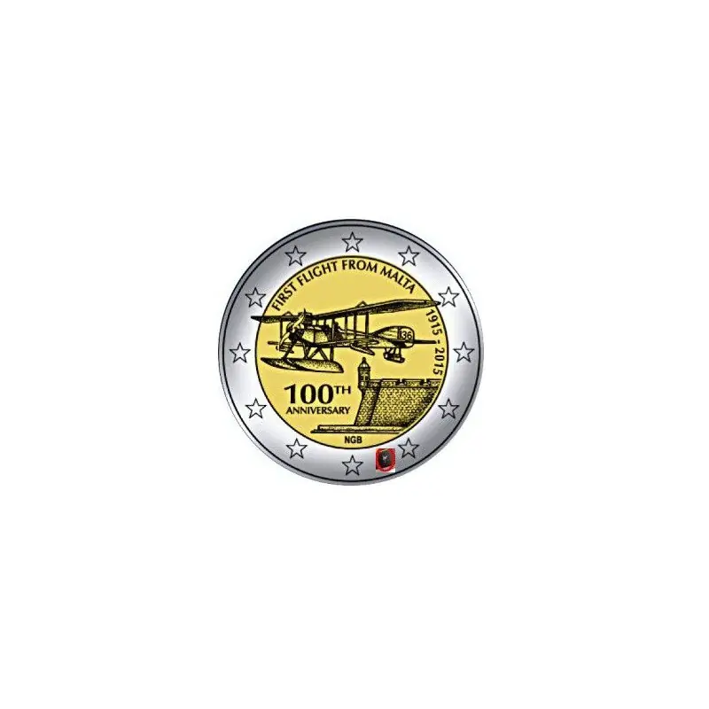 2 Euro Malta 2015 Unc 100 Jaar na de eerste vlucht van een vliegtuig in Malta. met Ned Muntmeesterteken