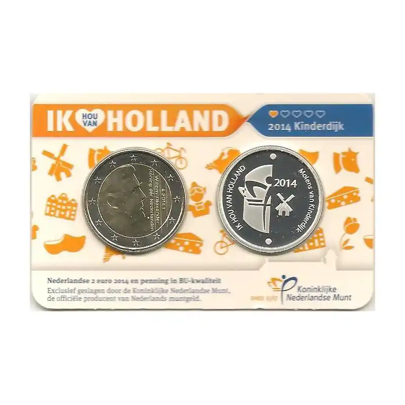 2 euro Nederland 2014 Holland Coin Fair in coincard met Zilveren penning Kinderdijk