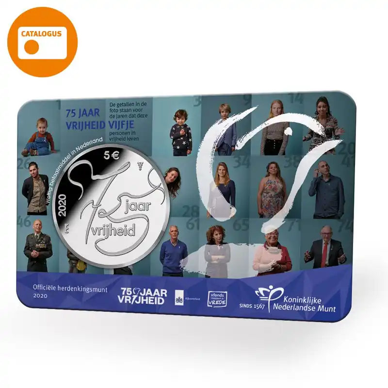 Hoewel een deel van Nederland al een jaar eerder bevrijd werd, vieren we in 2020 dat heel Nederland in vrijheid mag leven sinds 5 mei 1945. De officiële herdenkingsmunt het ‘75 jaar vrijheid Vijfje’ wordt geslagen in opdracht van het ministerie van Financiën en is de eerste herdenkingsmunt van 2020.75 jaar vrijheidIn 2020 vieren we dat 75 jaar in vrijheid leven, in het besef dat we samen verantwoordelijk zijn om vrijheid door te geven aan nieuwe generaties. Lees meer over 75 jaar vrijheid en hoe de Nederland dit viert op onze pagina ‘Over 75 jaar vrijheid’.Ontworpen door Marijke van WarmerdamKunstenaar Marijke van Warmerdam is de ontwerper van het 75 jaar vrijheid Vijfje. Zij liet zich inspireren door de feestelijke sfeer die 75 jaar vrijheid met zich meebrengt en heeft daarom een vrolijk lint verwerkt op zowel de voor- als de keerzijde van de munt. Lees meer over het ontwerp op onze pagina ‘Inspiratie van de kunstenaar'.