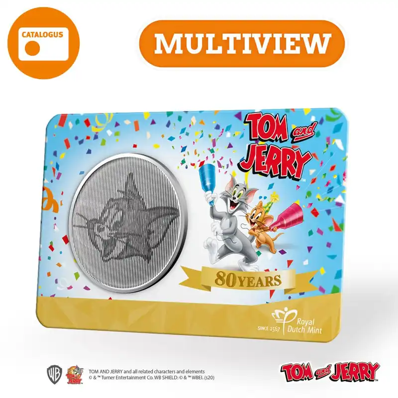 De beroemdste kat en muis ooit zijn natuurlijk Tom en Jerry, die in 2020 hun 80e verjaardag vieren. In 1940 verscheen de eerste Amerikaanse tekenfilm van dit komische duo. De korte filmpjes tonen de frustrerende pogingen van Tom om Jerry te vangen. Een geweldige kat-en-muisverhouding waarbij de muziek en geluidseffecten bijdragen aan de humor en actie. Samen hebben ze zelfs zeven Oscars gewonnen voor beste korte animatiefilm! Ze zijn niet los van elkaar te zien en daarom brengt de Koninklijke Nederlandse Munt ze ook samen op deze komische uitgifte. Naar verwachting zal de film ter ere van de 80e verjaardag van het kat en muis duo in maart 2021 verschijnen.Voorzijde met twee individuele afbeeldingen!De vrolijk gekleurde coincard toont het ondeugende duo. De speelse uitgifte is ook nog eens zeer bijzonder. De innovatieve multiview techniek maakt het mogelijk dat de voorzijde maar liefst twee afbeeldingen bevat, die alleen tevoorschijn komen vanuit een bepaalde hoek. Als u de uitgifte naar de ene kant keert, ziet u Tom, en aan de andere kant ziet u Jerry! De keerzijde toont het jubileumlogo van 80 jaar Tom en Jerry. Een feestelijke uitgifte voor een feestelijke gelegenheid!