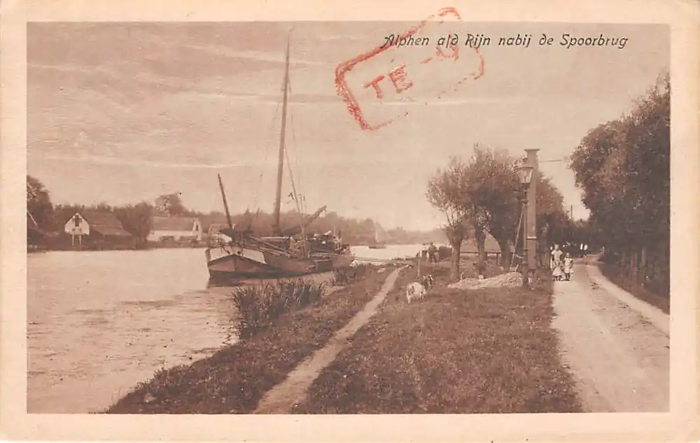 Uitgave P.J. van der Linden, Alphen. 18 1287. Gelopen ansichtkaart; postzegel verwijderd.