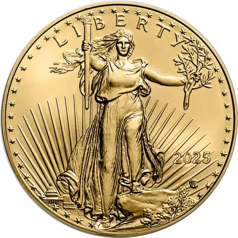 De Amerikaanse Gouden Eagle-munt, die sinds 1986 beschikbaar is, is een van de populairste gouden munten ter wereld. De munt heeft in 2021, ter ere van de 35e verjaardag van de serie, een nieuw ontwerp gekregen. De American Eagle 1 troy ounce gouden munt 2026 weegt 31,1034 gram en bevat .9167 (22 karaats) puur goud. De munt heeft een zuiverheid van 22 karaat (91,67% goud, 3% zilver en 5,33% koper) en een totaal gewicht van 33,93 gram. De American Eagle was de allereerste gouden investeringsmunt in de Verenigde Staten, specifiek ontworpen voor handelsdoeleinden.