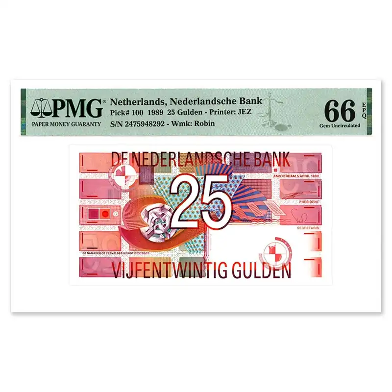 Autentyczny 25 Gulden “Roodborstje” 1989 PMG 66