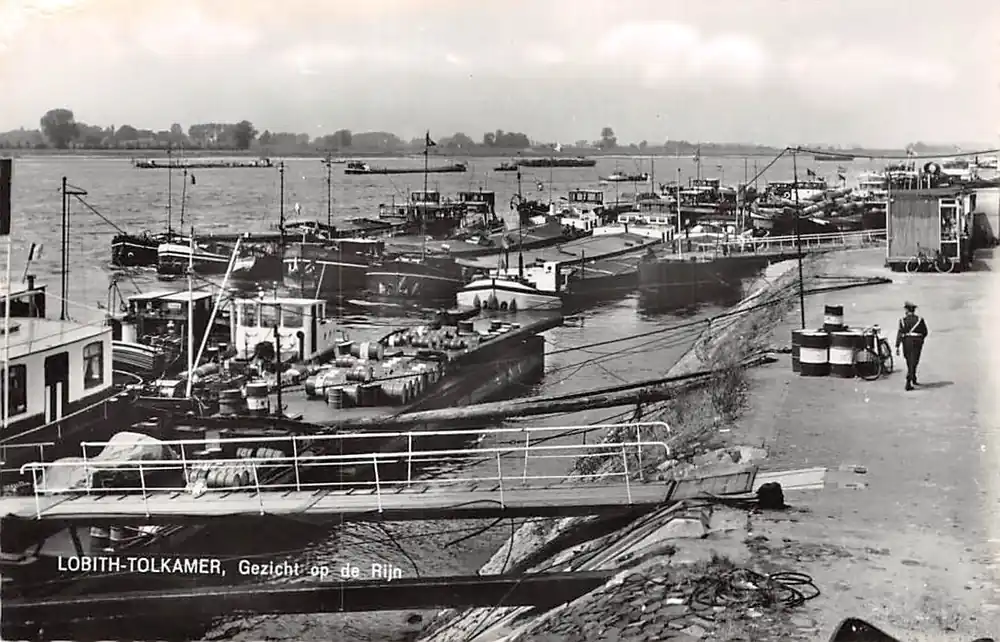 Autentyczny Lobith Tolkamer Gezicht op de Rijn en de kade Binnenvaart schepen Scheepvaart HC46385