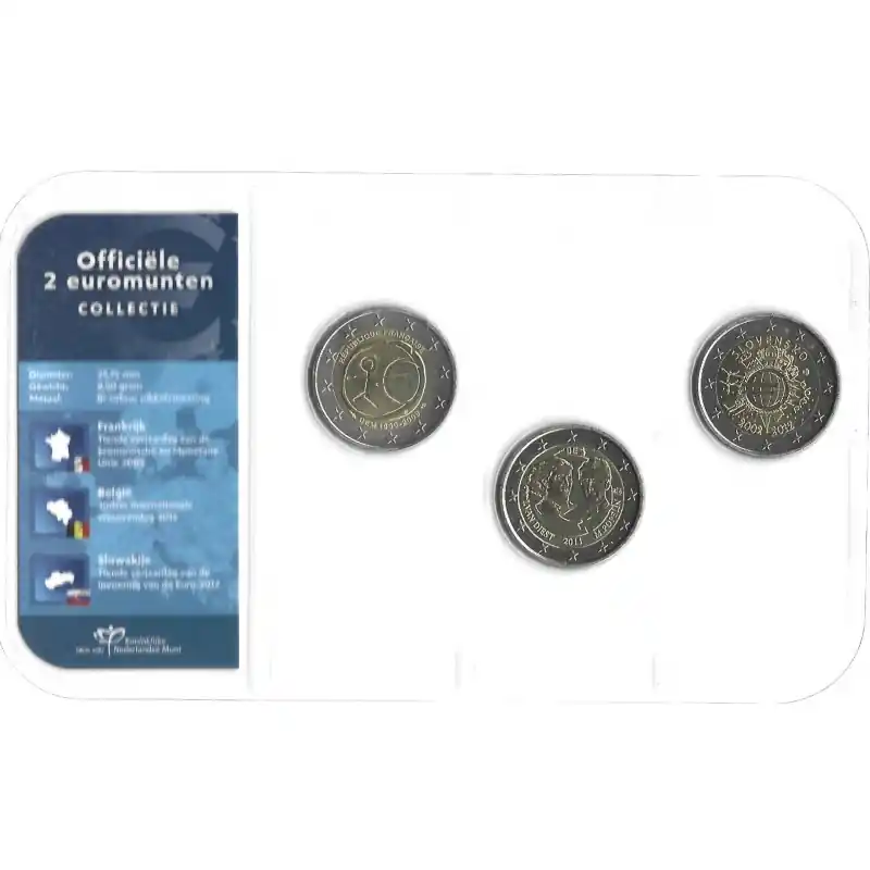 Officiële 2 Euromunten collectie KNM UNC Frankrijk 2009 – België 2011 – Slowakije 2012