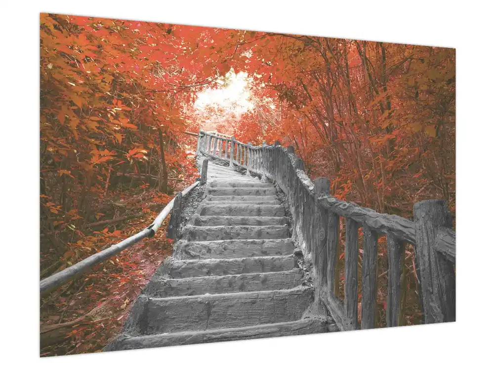 Autentyczny Schilderij – Trap in de natuur, oranje