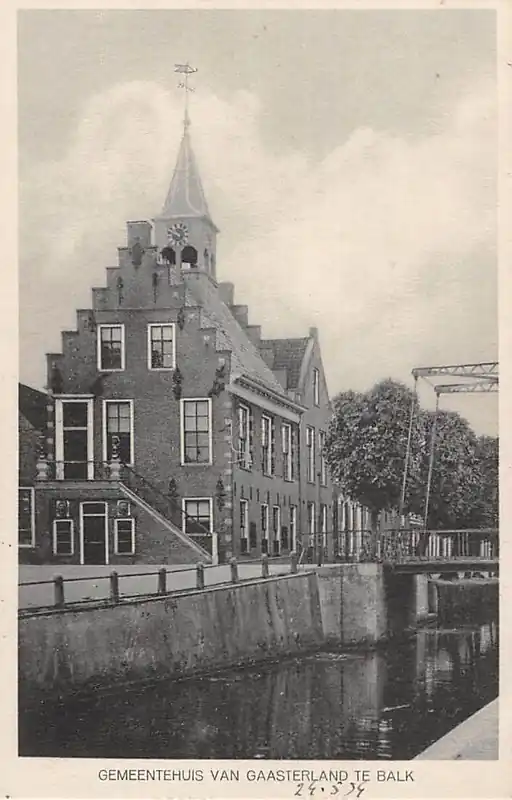 Uitgave M. Overdiep, Boekh. Balk. Ongelopen beschreven ansichtkaart met Ovaal reclame sticker: Bezoekt Gaasterland, Inlichtingen bij V.E.N. Balk.