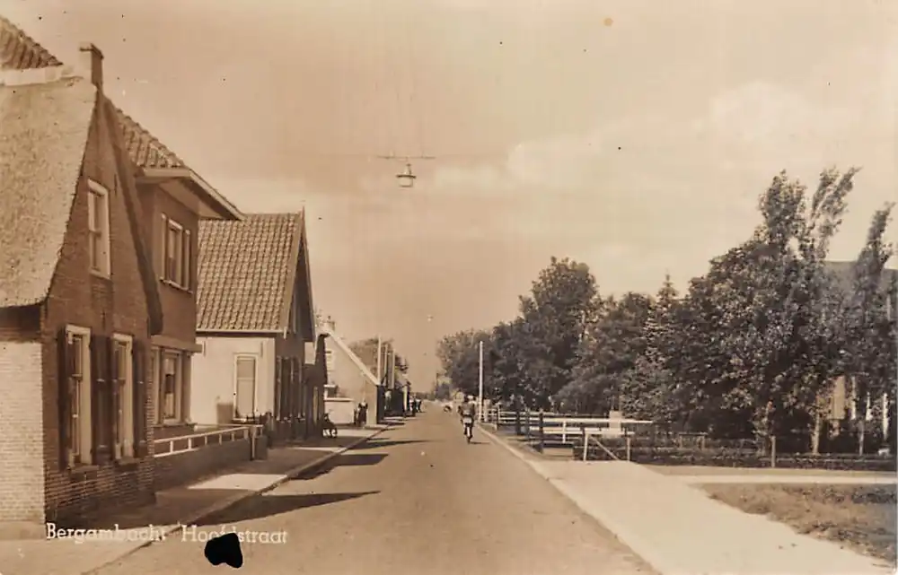 Uitgave J. de Bruin, Bergambacht. Ongelopen ansichtkaart met inktvlek voorkant en inktvlekjes achter.