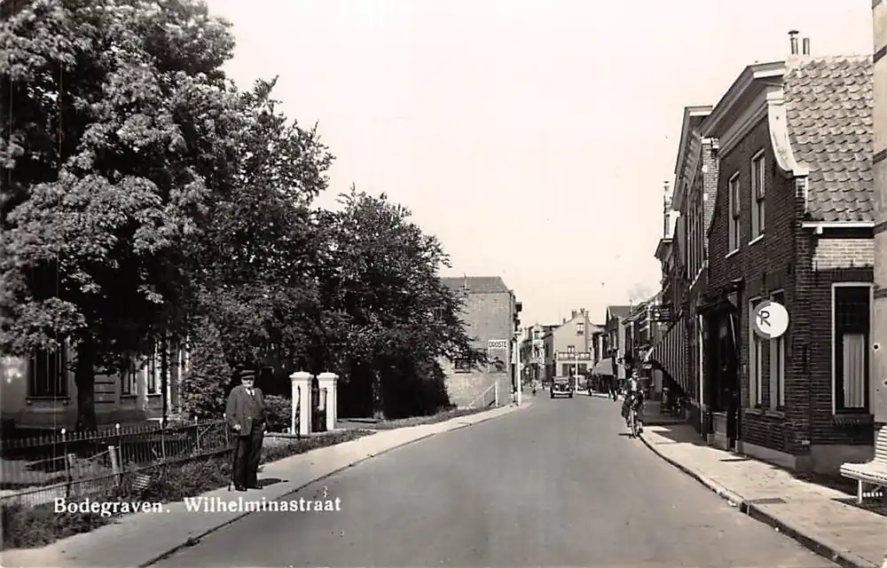 Newo. Versloot’s Boekhandel, Bodegraven. Mooie gelopen ansichtkaart met postzegel en stempel 1940.