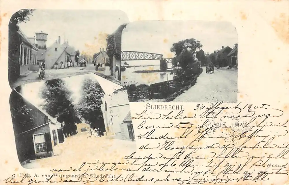 Uitg. A. van Wijngaarden, Sliedrecht. Gelopen ansichtkaart met postzegel en stempels 1900. Lichte roestplekjes.