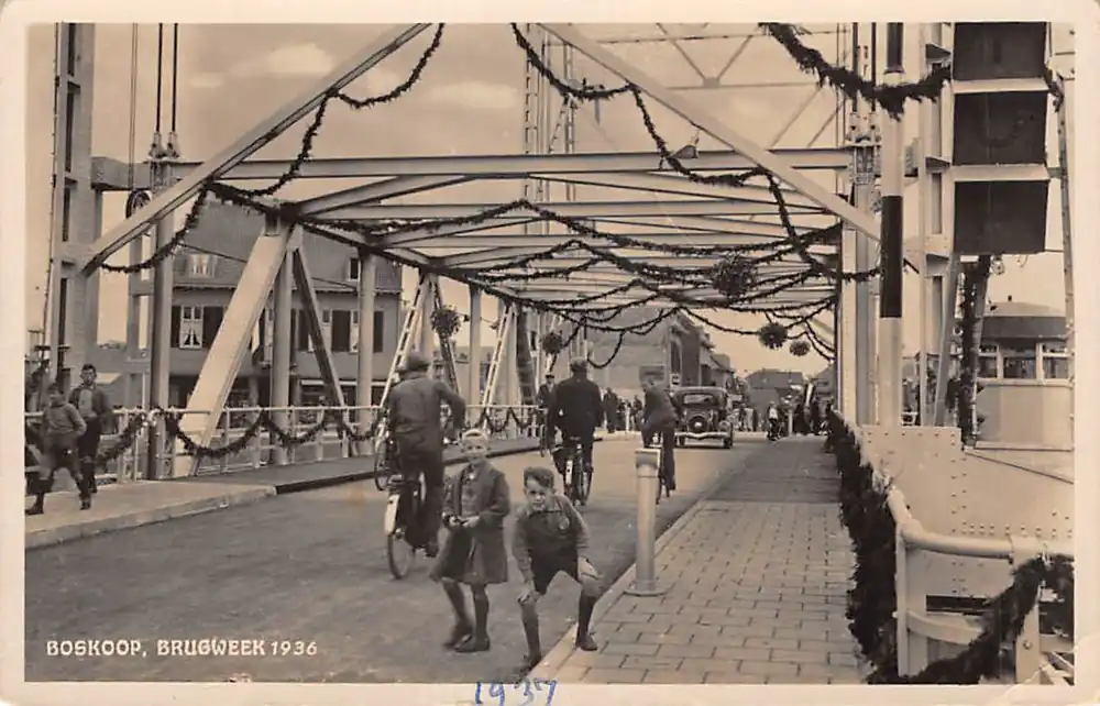 Uitg. C. Hogendoorn Jac zn. Boskoop. Gelopen ansichtkaart met postzegel en stempel 1937. Miniem knikje onderhoekje rechts en witte hoekjes licht gesleten..