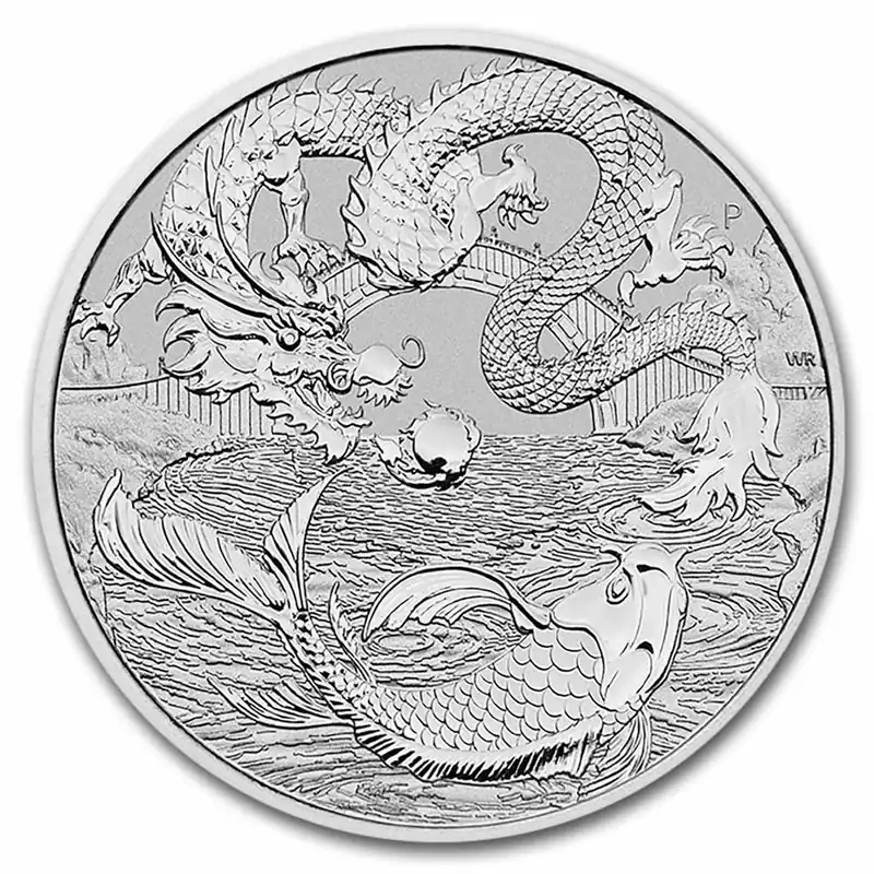 Deze nieuwe serie dan de Australische Perth Mint genaamd “Chinese Myths & Legends” werd voor het eerst geïntroduceerd in 2017. Inmiddels zijn we beland bij wederom een nieuwe munt uit de serie: de Chinese Myths & Legends: Dragon & Kom 1 troy ounce zilveren munt 2023. De munt is uitgebracht in een oplage van 45.000 zilveren munten wereldwijd. De munt bevat een vuurspuwende draak opgehangen in lucht boven een waterweg, wiens adem van vuur een parel in het midden van de munt omhult. De koivis, een symbool van geluk en een lang leven in de Chinese cultuur spatten in het water eronder. Ook inbegrepen is het muntteken “P” van The Perth Mint. De achtergrond van het ontwerp omvat de Jade Belt Bridge in Peking. De munt weegt 31,1034 gram en bevat .9999 puur zilver.