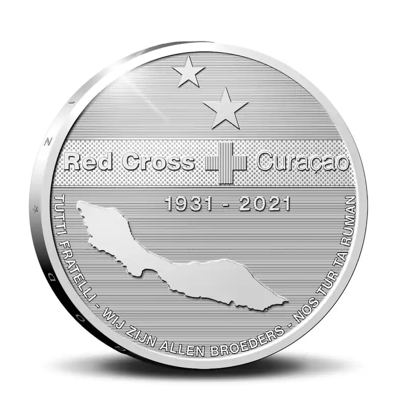 Dit jaar bestaat het Rode Kruis Curaçao 90 jaar. Het allereerste Rode Kruis werd in 1863 opgericht door Henry Dunant, een Zwitserse zakenman, naar aanleiding van een veldslag tussen Frankrijk en Oostenrijk. Dunant hielp op het slagveld met het verzorgen van de gewonde soldaten. Hij mobiliseerde ook de lokale bevolking om mee te helpen, onder het motto ‘Tutti fratelli’: wij zijn allen broeders en we moeten elkaar helpen. Deze verbroedering inspireerde hem tot het oprichten van een neutrale hulporganisatie, die hulp moest bieden in tijden van oorlog: het Rode Kruis. Inmiddels is de organisatie uitgegroeid tot het grootste hulpverlenersnetwerk ter wereld, met lokale verenigingen in 192 landen. In 1931 kreeg Curaçao een eigen tak van het Rode Kruis. De hulpverleners van het Rode Kruis bieden op Curaçao en omliggende eilanden humanitaire hulp waar nodig. Na natuur- en andere rampen verzorgen ze bijvoorbeeld veilig onderdak voor kwetsbare personen. Bovendien delen ze voedselpakketten uit, verlenen ze medische hulp en helpen ze bij wederopbouw.Op de voorzijde van de munt ziet u de kenmerken van de vlag van Curaçao in de heraldische kleurencode. Deze kleurencode wordt vaak gebruikt op zwart-wittekeningen: zonder daadwerkelijk kleur te gebruiken, geven arceringen en stippen aan welke kleur bedoeld wordt. Ook de contour van het eiland Curaçao is op eenzelfde manier weergeven. Onderaan staat Dunants beroemde uitspraak ‘Tutti fratelli’ (‘Wij zijn allen broeders’) in zowel het origineel (Italiaans) als het Nederlands en het Papiaments. De keerzijde toont het wapen van de Nederlandse Antillen met de landsaanduiding, de denominatie ‘5 G’ (gulden) en het jaartal 2021. De munt wordt geleverd in een luxe etui mét Certificaat van Echtheid.