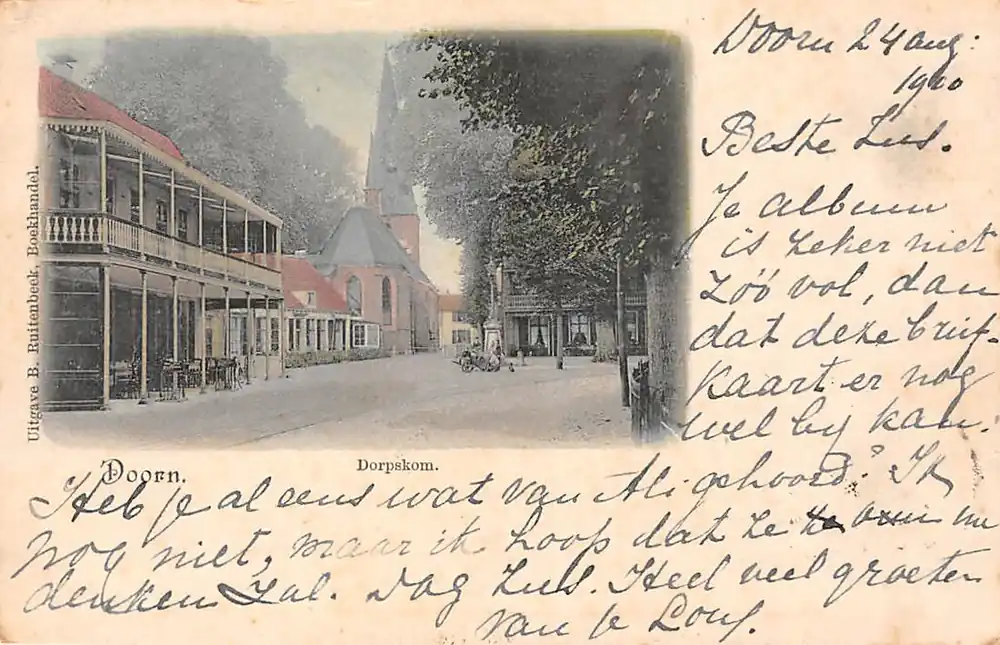 Uitgave B. Ruitenbeek, Boekhandel. Gelopen ansichtkaart met postzegel en stempels 1900.