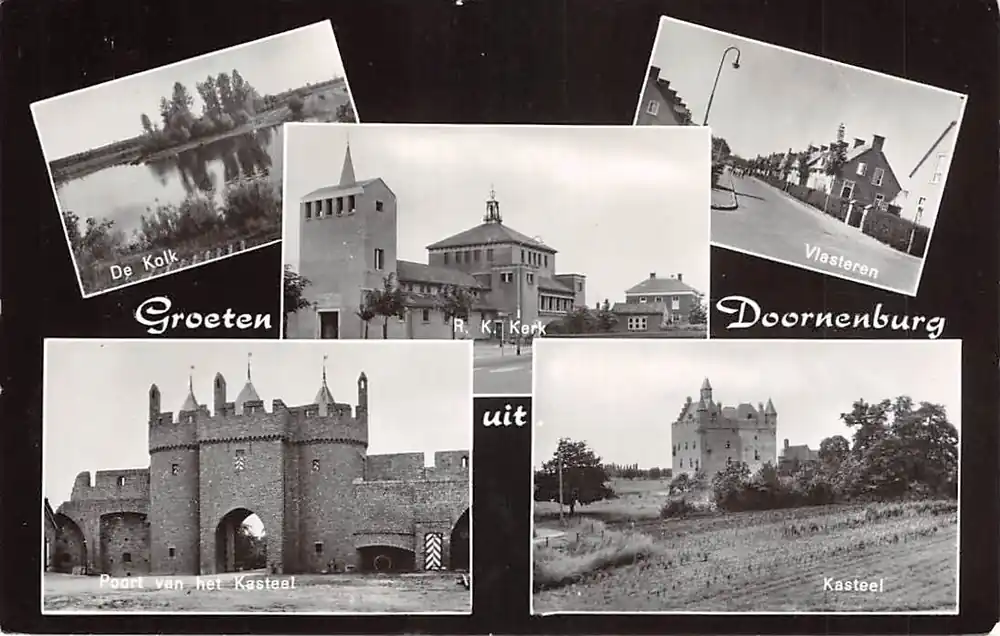Uitg. van W. van kol, Doornenburg. BELL. 61567. 573. Ongelopen ansichtkaart. Ongelopen ansichtkaart. Op de achterkant aantekeningen van de vertegenwoordiger van de ansichtkaartenuitgeverij m.b.t. een nieuwe uitgave van deze kaart.