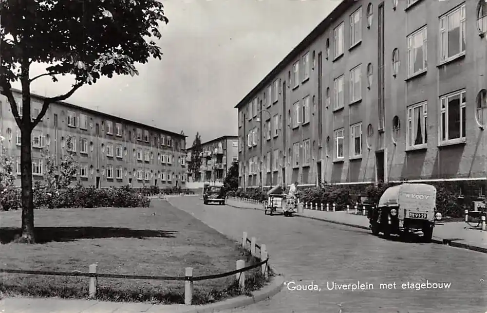 Zeer schaarse ansichtkaart van gebr. Spanjersberg en met postzegel en stempel 1958. Let op: zijrandje achter bovenste laagje papier los en miniem scheurtje in onderrandje rechts van midden.