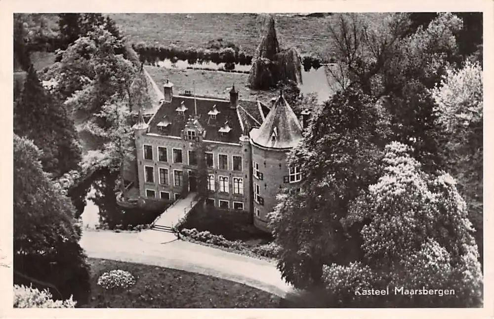 A. de Man – de Toko, Maarsbergen. N.V. Luchtfoto Nederland. Gelopen ansichtkaart met postzegel en stempel 1954. Miniem schadeplekje wit randje linker onderhoekje.