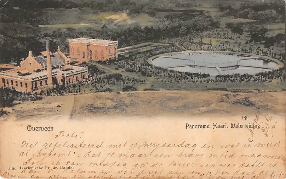 Uitg. Haarlemsche Pr. Br. Handel. Hoekjes iets gebruikt. Gelopen ansichtkaart met postzegel en stempels 1905.