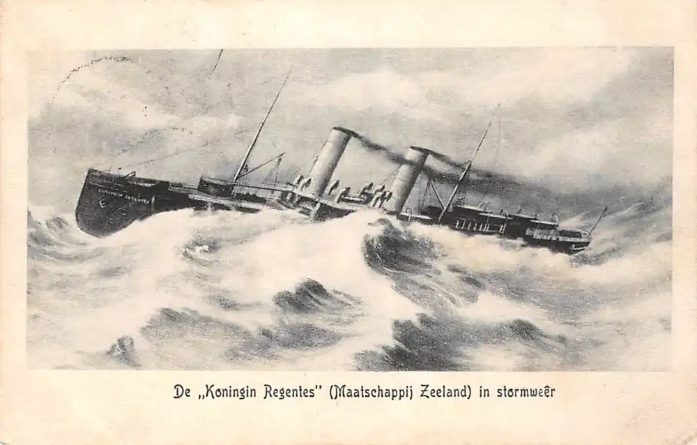 Darmowa dostawa Vlissingen De Koningin Regentes Maatschappij Zeeland in stormweer 1909 Schepen Scheepvaart HC47164