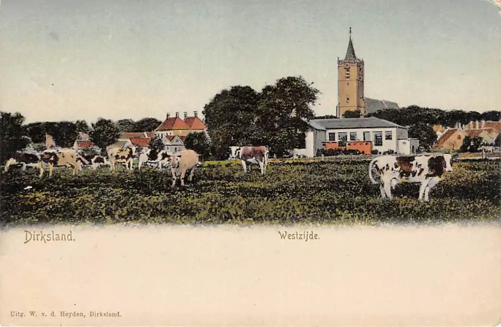 Uitg. W. v.d. Heyden, Dirksland. Mooie gelopen ansichtkaart met postzegel en stempels 1906.