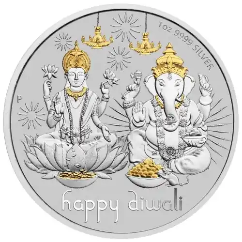 Met een afbeelding van Lakshmi, de godin van rijkdom en welvaart, en Ganesh, de god van het geluk met het olifantenhoofd, omvat deze munt van de Perth Mint een bijzonder ontwerp. Daarnaast is de munt verguld met 24-karaats goud op geselecteerde elementen, waaronder de sierlijke hoofdtooien en halsstukken van de goden. Ook symbolisch voor Diwali, heeft de voorzijde een op ‘rangoli’ geïnspireerd patroon bestaande uit diya (lampen) en lotusbloemmotieven. De munt is geslagen in .9999 puur zilver en wordt geleverd met een certificaat van echtheid en luxe geschenkdoos.