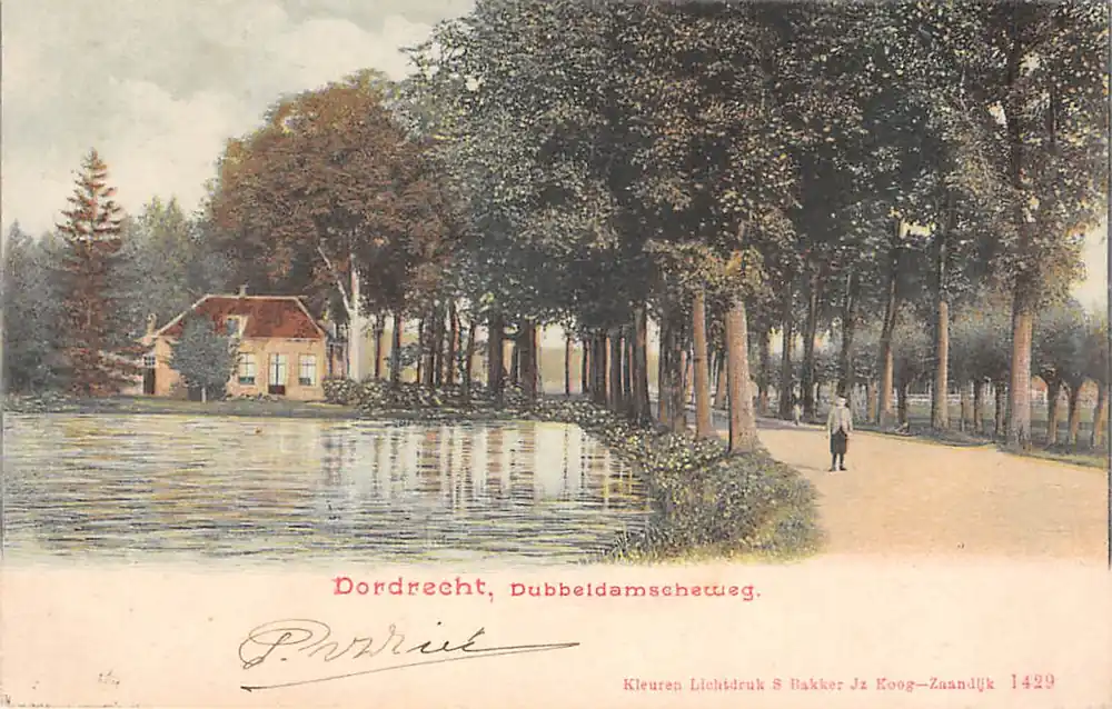 Kleuren-Lichtdruk S. Bakker Jz. Gelopen ansichtkaart met postzegel en stempels begin 1900.