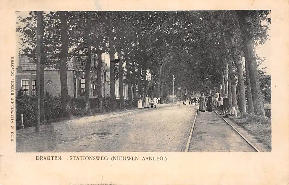 Uitg. E. Nieuwholt, Boek. Dragten. Gelopen ansichtkaart met postzegel en stempels 1907.