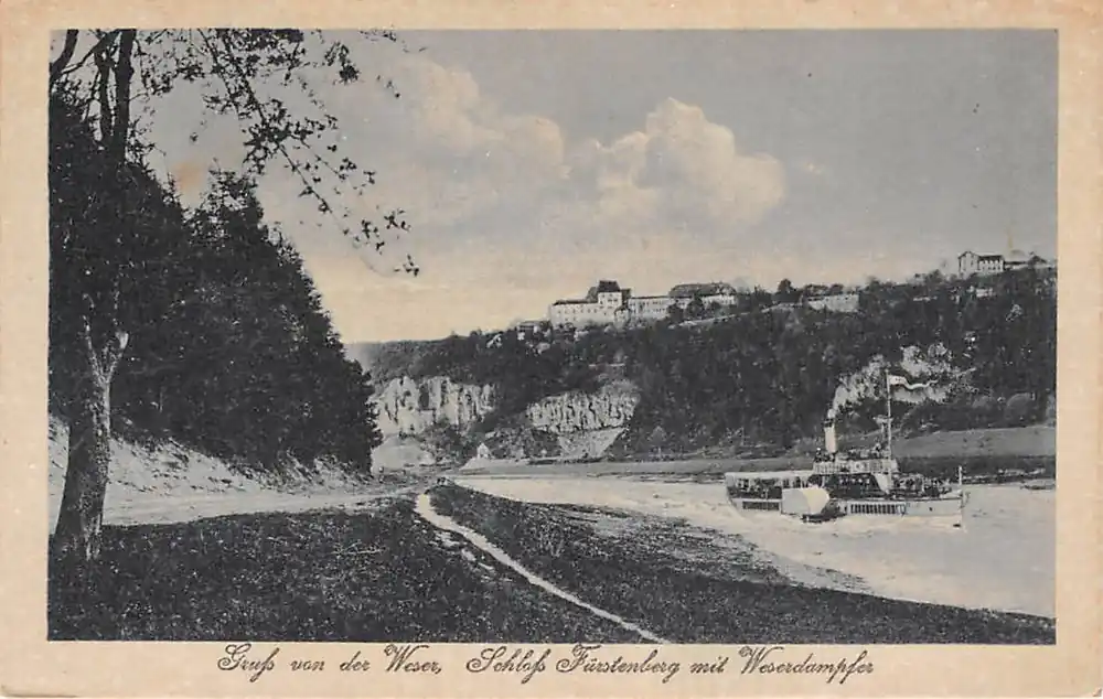 Duitsland Schloss Fürstenberg Westf. Weser im Landkreis Holzminden mit Weserdampfer Scheepvaart Kasteel Deutschland Europa HC59326 Rabat
