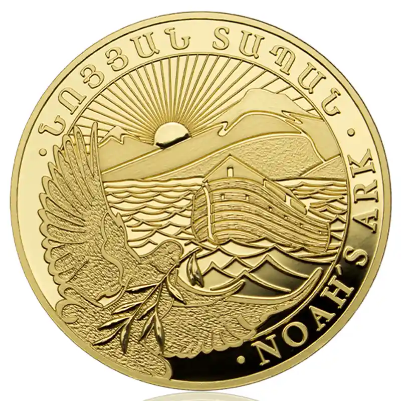 Het verhaal van de Ark van Noach is bekend over de hele wereld. Dit klassieke verhaal wordt vereeuwigd in een gouden munt geïntroduceerd in Armenië in 2011. De Noahs Ark 1 troy ounce gouden munt 2021 weegt 31,1304. Het ontwerp van de Noah’s Ark komt van Eduard Kurghinyan en verwijst naar het Bijbelse verhaal uit Genesis 8.4. De voorzijde van de munt wordt ingenomen door het wapenschild van Armenië. Op de achterkant is de Ark van Noach afgebeeld in de zee, met in de achtergrond het Arafat gebergte.