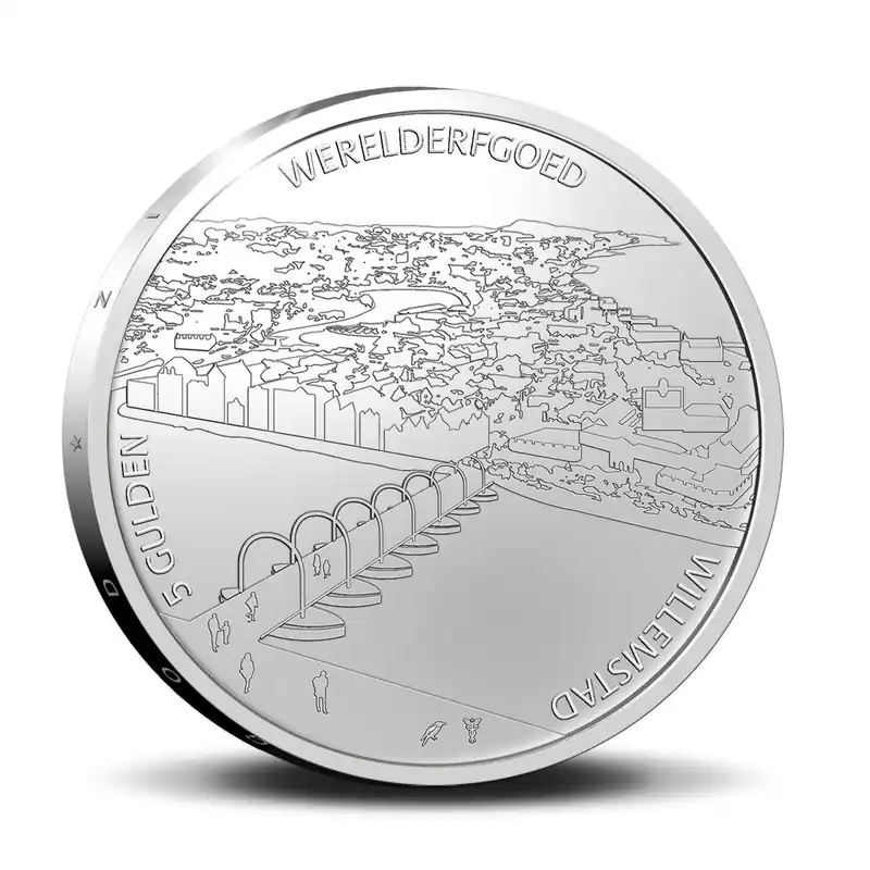 Wie aan Willemstad op Curaçao denkt, ziet meteen de kleurrijke panden aan de bekende Sint Annabaai voor zich. Willemstad staat inderdaad bekend om de kleurrijke, ‘Hollandse’ architectuur, maar wanneer u de stad beter leert kennen, ontdekt u ook de Spaanse en Portugese invloeden. Deze mix van invloeden en culturen heeft ervoor gezorgd dat verschillende wijken in de stad in 1997 zijn opgenomen tot het UNESCO Werelderfgoed. De Koninklijke Nederlandse Munt slaat, in opdracht van de Centrale Bank van Curaçao en Sint Maarten, een zilveren 5 gulden herdenkingsmunt voor Willemstad. Deze munt is een wettig betaalmiddel op de eilanden Curaçao en Sint Maarten.Willemstad Unesco WerelderfgoedWillemstad is de hoofdstad van Curaçao, maar ook de voormalige hoofdstad van de Nederlandse Antillen. De Spanjaarden kenden het eiland al voor 1500, maar vestigden zich er officieel in 1527. In 1634 werd een handelspost aan de Sint Annabaai veroverd door de West-Indische Compagnie (WIC). Jarenlang was Willemstad in Nederlandse handen, maar ook enkele jaren onder Engels beheer. Sinds 2010 is Curaçao een zelfstandig land binnen het Koninkrijk der Nederlanden.Sinds 1997 behoren de historische wijken Punda, Otrobanda, Scharloo en Pietermaai tot het Unesco Werelderfgoed. Willemstad hoort hiermee tot een kleine groep van World Heritage Cities die vanwege hun universele cultuurhistorische waarde als monumenten worden gezien. De unieke ligging van de wijken rondom het water benadrukken waarom Willemstad zich onderscheidt als havenstad. Daarnaast profileert Willemstad zich nog altijd als historisch herkenbare stad.OntwerpDe Willemstad 5 gulden is ontworpen door Cleo Maxime de Brabander en is gelijk aan de Nederlandse 5 euromunt waarvan het eerste exemplaar door Koning Willem-Alexander werd geslagen. De voorzijde van de zilveren munt toont Koning Willem-Alexander. Op de achtergrond staat de Koningin Julianabrug in Willemstad afgebeeld. De vier sterren aan de bovenkant van de voorzijde staan symbool voor de vier landen die het Nederlands Koninkrijk vormen: Nederland, Curaçao, Aruba en Sint Maarten. De keerzijde bevat een stadsgezicht met alle vier de wijken die onderdeel zijn van het UNESCO Werelderfgoed: Punda, Otrobanda, Scharloo en Pietermaai. Er zijn verschillende belangrijke monumenten op de munt te ontdekken: de Handelskade, de Mikvé Israël-Emanuel synagoge en Fort Amsterdam in Punda en de Emanu-el tempel; welke het begin van de wijk Pietermaai kenmerkt.