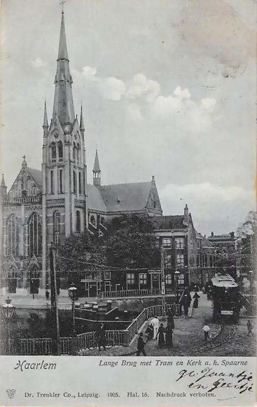 Ekspresowa dostawa Haarlem Lange Brug met Tram en Kerk a.h. Spaarne 1905 HC37262