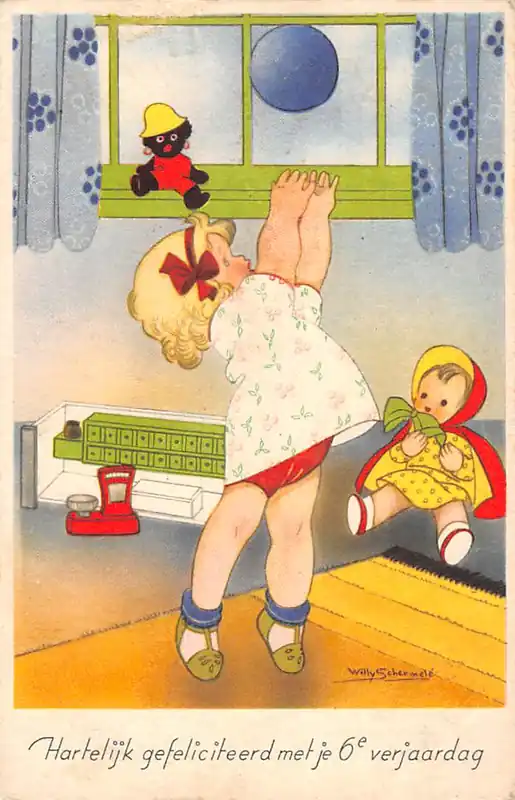 Serie Kinderprentbriefkaarten. Sparo. Gelopen ansichtkaart met stempel 1941; postzegel netjes verwijderd. Licht schaafplekje wit bovenrandje links.