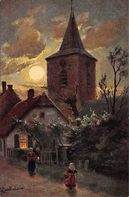 W. de Haan. Serie 99 – 6 dessins. Gelopen ansichtkaart met postzegel en stempel 1908.
