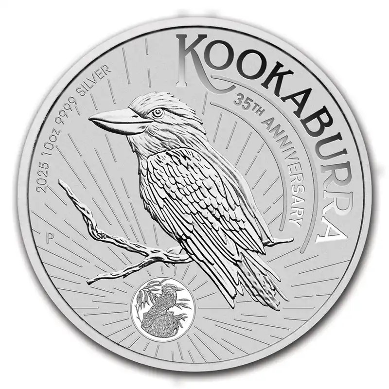 De Kookaburra 10 troy ounce zilveren munt 2025 is nu te bestellen bij Goudverzekerd. Ter ere van het 35-jarig jubileum van de Kookaburra-serie, heeft de 2025 editie het ontwerp gekregen van de Privy munt uit 1990. Zoals ieder jaar wordt ook de 2025 editie van de zilveren Kookaburra geslagen in een beperkte oplage van maximaal 500.000 stuks. Gemaakt door kunstenaar Sean Rogers, toont de munt een Kookaburra op een boomtak. Ook inbegrepen in het ontwerp is de inscriptie “Kookaburra” en De Perth Mint’s “P” muntteken. De jaardatum 2025, evenals het gewicht en de zuiverheid, is bij het ontwerp inbegrepen. Op de keerzijde van elke munt is een beveiligingskenmerk gegrafeerd in het ontwerp van de munt. Het is alleen detecteerbaar onder een vergrootglas.