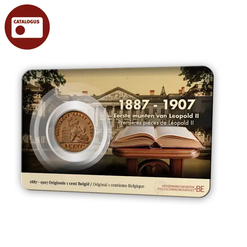 In navolging van de succesvolle eerste uitgifte van de originele historische Belgische 1 frank munt 1950 – 1988 in coincard, valt nu de eer aan een heel bijzondere cent! De 1 cent 1869 – 1907 is nu in beide taalvarianten in viertalige coincard verkrijgbaar!De 1 cent België 1887-1907 en de 1 centime Belgique 1869 – 1907 is een van de weinige munten die pas wijzigde toen er een nieuwe koning kwam. EN die geen voorganger kende!De Franse editie is het oudst, deze werd uitgegeven in: 1869, 1870, 1873, 1874, 1875, 1876, 1882, 1899, 1901, 1902 en 1907. De Vlaamse editie circuleerde in: 1887, 1894, 1899, 1901, 1902 en 1907.De munt, ontworpen door Joseph Pierre Braemt, toont op de voorzijde de Belgische Leeuw met zijn poot op de grondwetstafel 1831. Tekst: op de Centime in het Frans: L’UNION FAIT LA FORCE, CONSTITUTION BELGE 1831, 1 CENTe, BRAEMT F.. Op de Nederlandse variant staat in het Nederlands: EENDRACHT MAAKT MACHT, BELGISCHE GRONDWET 1831, 1 CENTm, BRAEMT F.. De keerzijde toont het gekroonde monogram van Leopold II. Tekst op de centime in het Frans: LEOPOLD II ROI * DES BELGES. En in het Nederlands: LEOPOLD II * KONING DER BELGEN. De munt heeft geen muntmeester- en munthuisteken.