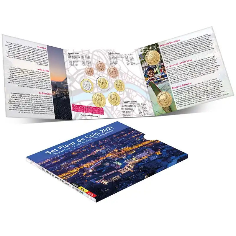 Een schitterende hulde aan Luik!Na de Belgische grootsteden Brussel (2019) en Antwerpen (2020) is het nu de beurt aan Luik om de Fleur de Coin-set 2021 op te fleuren. Het Waalse Luik is de hoofdstad van de gelijknamige provincie en telt zo'n 200.000 inwoners, waardoor het naar inwonertal de vierde grootste stad van België is. De stad Luik heeft diverse Belgische voetbalhelden grootgebracht en ook het brouwen van een lekker Belgisch biertje kunt u aan de Luikenaren toevertrouwen!Met deze nieuwe jaarreeks verzekert u zich van een uitzonderlijke muntenserie. Naast de acht onberispelijk geslagen Belgische eurowaarden van 2021, treft u in deze set ook twee exclusieve Belgische herdenkingsmunten aan: de nieuwe 2,5 euromunt 'UEFA EURO 2020' en de 2,5 euromunt '5 jaar Belgische biercultuur immaterieel erfgoed'. Een bijzonder stijlvolle verpakking maakt het geheel compleet. Alleen al door hun ongewone waarde vormen de 2,5 eurostukken van 2021 die u in deze FDC-set aantreft een felbegeerd collector's item voor de verzamelaar.