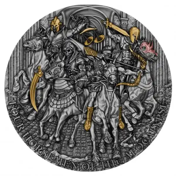 Deze prachtige zilveren munt van 5 troy ounce is de nieuwste uitgave in de serie “Four Horsemen Of The Apocalypse” en toont de dood zelf, rijdend op het beroemde bleke paard. De munt heeft een selectieve Gold plating, heeft een Antique Finish kwaliteit en wordt geleverd in een etui, samen met het certificaat van echtheid. Beperkte oplage van slechts 500 stuks wereldwijd!