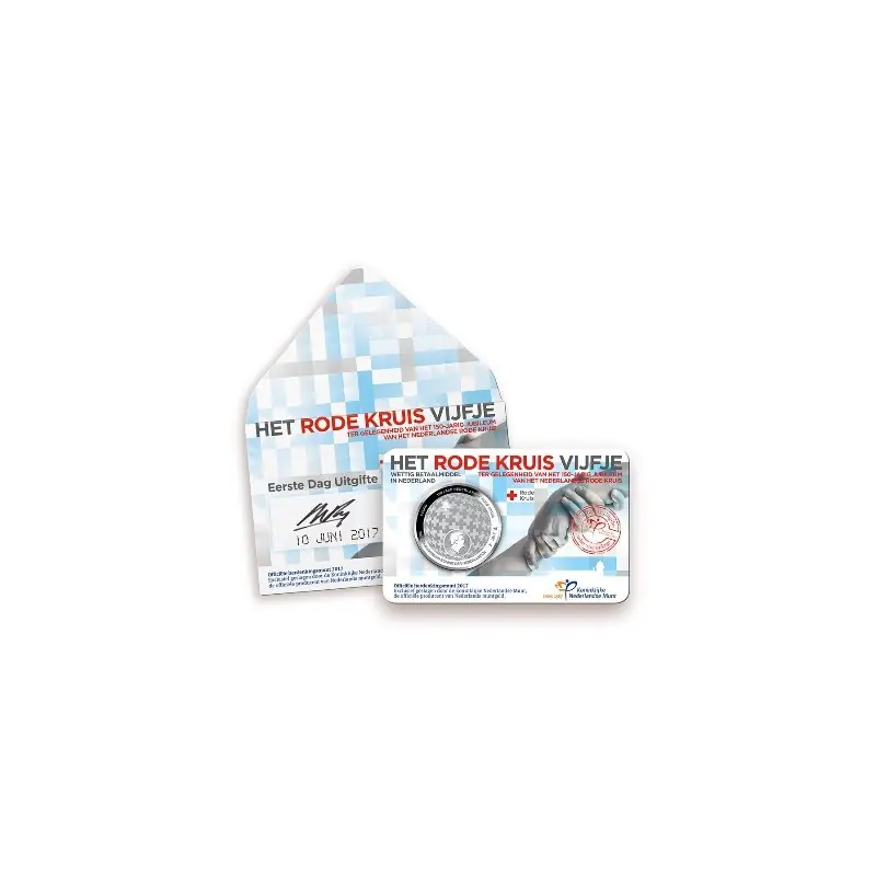 Nederland 2017 5 Euro het Rode Kruis Vijfje Verzilverd unc in coincard 1e dag uitgifte