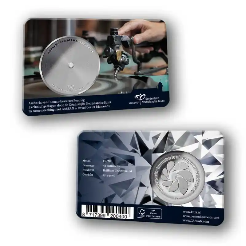 Nederland 2019 Immaterieel erfgoed ‘Ambacht van de Diamantwerker’ penningin coincard. Premium