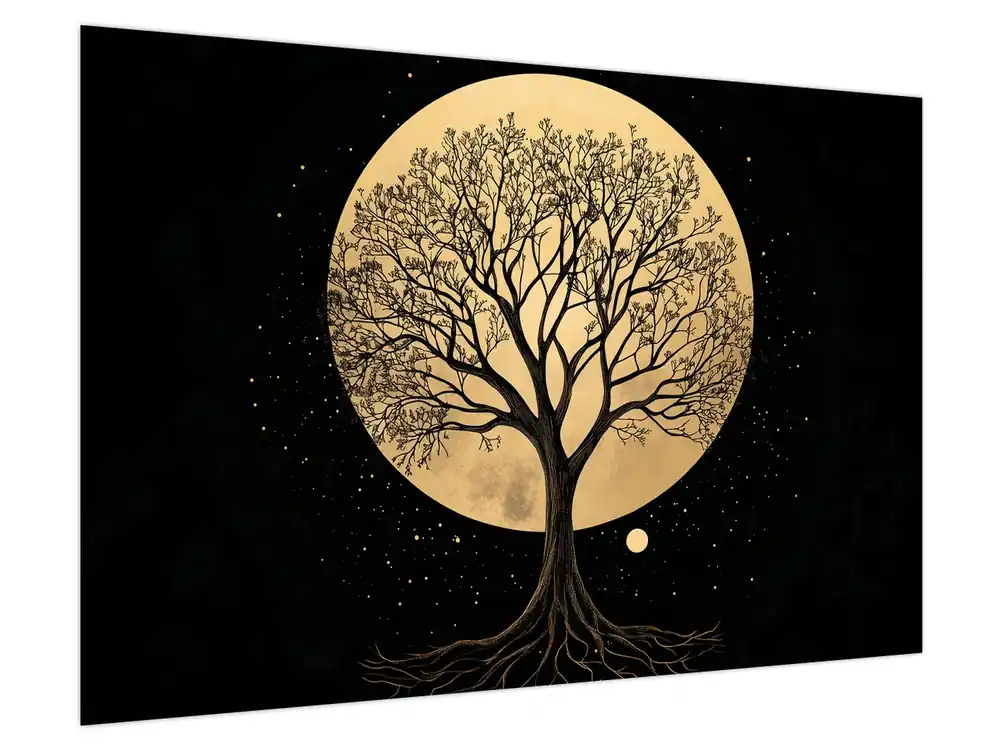 Niska cena Schilderij – Boom in gouden volle maan I.