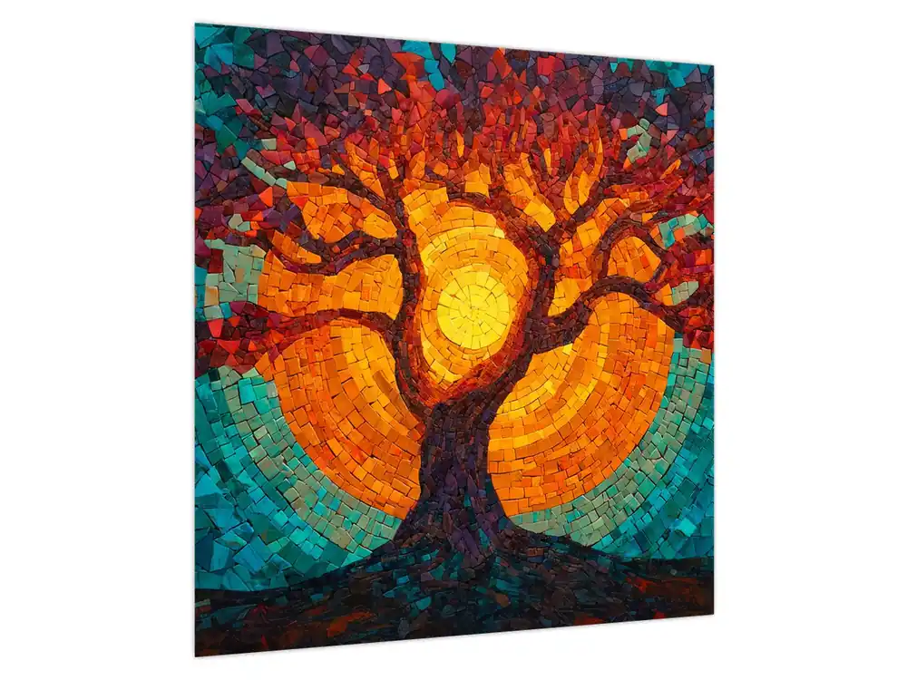 Niska cena Schilderij – Levensboom en zon in mozaïek