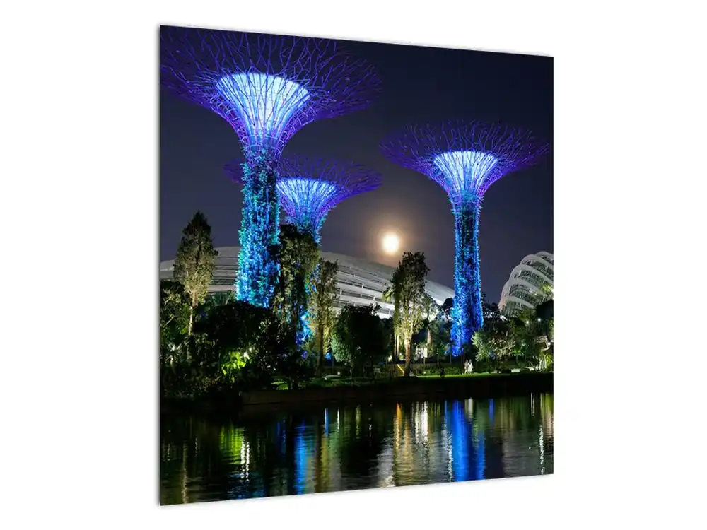 Niska cena Schilderij – Volle maan boven de tuinen van Singapore