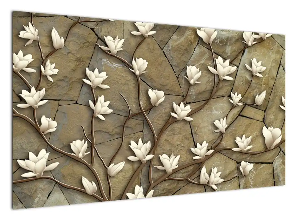 Niska cena Schilderij – Witte magnolia´s op stenen muur