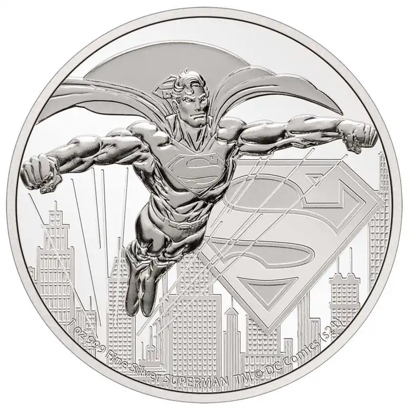 De zilveren muntenserie van de DC Comic (TM)-helden begon met de Batman (TM)-uitgave en ging daarna verder met Wonder Woman als tweede release. De serie wordt nu uitgebreid met de derde editie van de munt: de munt van Superman. De serie wordt uitgeven in 1 troy ounce fijn zilver en elke munt uit de serie wordt geslagen in een beperkte oplage van 15.000 stuks wereldwijd. Het land van uitgifte is Niue en de munten, die ook wettig betaalmiddel zijn, worden geslagen door de Nieuw-Zeelandse Munt. Verdere heldenmotieven zullen volgen en zouden vanwege het kleine aantal exemplaren en de grote vraag snel uitverkocht raken.