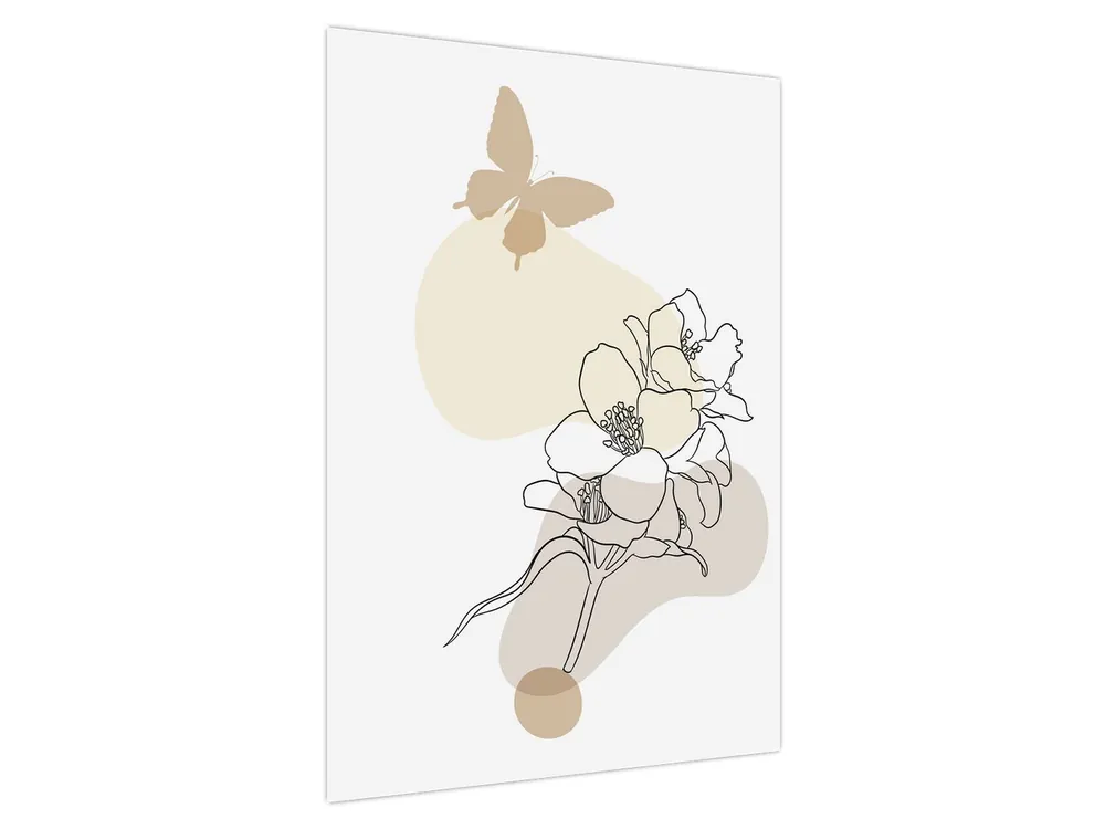 Oferta Schilderij – Beige bloemen met vlinder N⁰3
