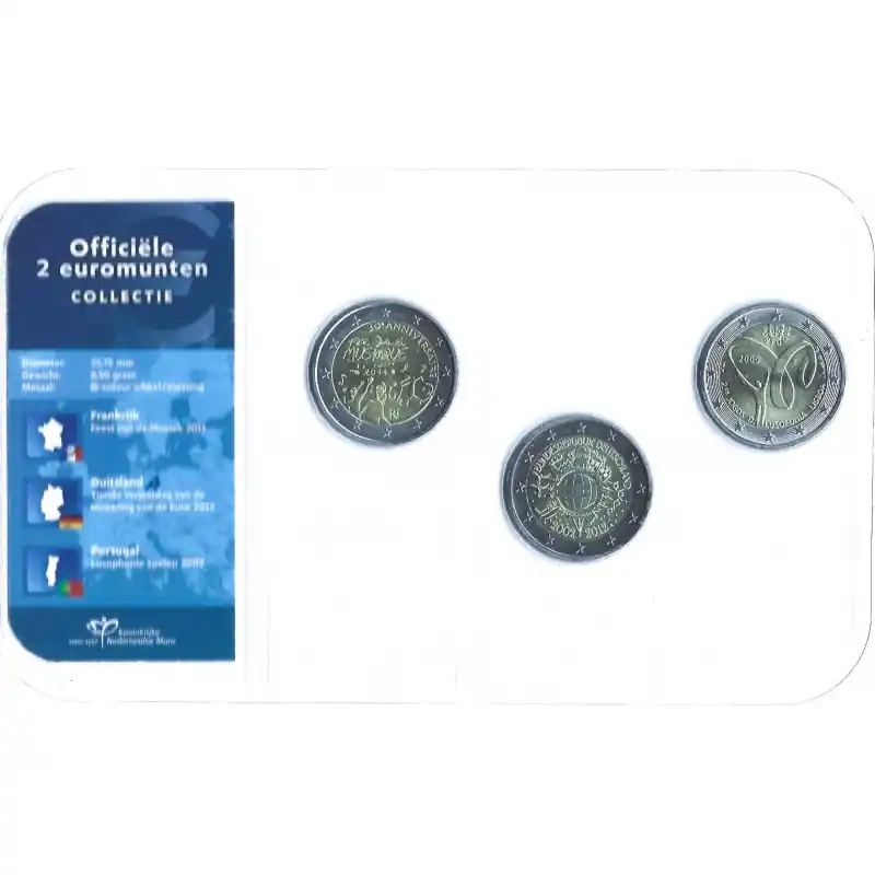 Officiële 2 Euromunten collectie KNM UNC Frankrijk 2011 – Duitsland 2012 – Portugal 2009