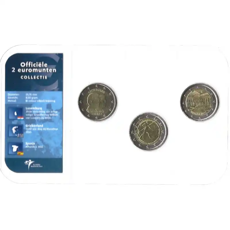 Officiële 2 Euromunten collectie KNM UNC Luxemburg 2006 – Griekenland 2010 – Spanje 2011