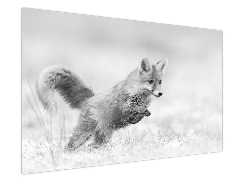 Oryginalny Schilderij – Springende vos, zwart-wit