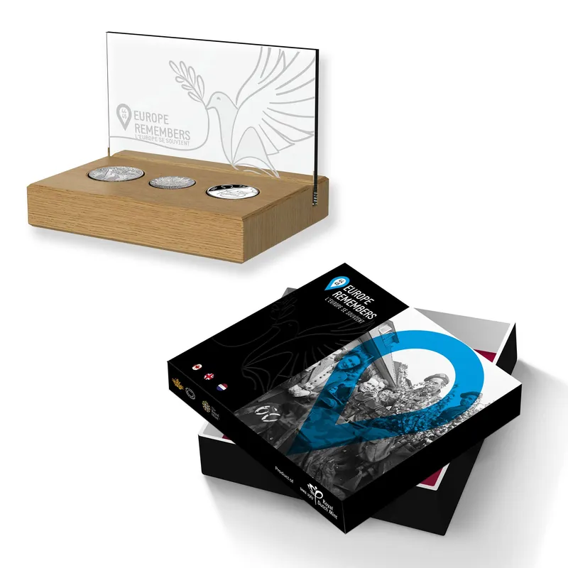 Canada, Engeland en Nederland, drie landen die onder andere betrokken waren bij het beëindigen van de Tweede Wereldoorlog, vieren 75 jaar vrijheid. Om dit te vieren brengen zij alle drie een eigen herdenkingsmunt uit. De Koninklijke Nederlandse Munt brengt deze samen in de Speciale set: Europe Remembers.In Nederland vieren we jaarlijks op 5 mei Bevrijdingsdag. In veel andere landen viert men op 8 mei V(E)-day (voluit Victory in Europe Day) en om deze reden staat de letter ‘V’, van ‘Victory’, vaak symbool op buitenlandse herdenkingsmunten. 8 mei is namelijk de dag waarop Duitsland officieel capituleerde. De Tweede Wereldoorlog duurde overigens hierna nog voort buiten Europa. De overgave van Japan op 2 september 1945 betekende pas het wereldwijde einde van de Tweede Wereldoorlog.Exclusieve samenwerking met Royal Leerdam CrystalIn samenwerking met Royal Leerdam Crystal is een bijzondere munthouder ontwikkeld ter gelegenheid van 75 jaar vrijheid om de munten in te bewaren. De munthouder bestaat uit eikenhout waarin de munten mooi gepresenteerd kunnen worden, gecombineerd met een glazen herinneringspaneel dat op de houten voet is bevestigd. Het glas met de prachtige afbeelding in het teken van 75 jaar vrijheid is ontwikkeld door de designafdeling van Royal Leerdam Crystal.Sinds 1878 worden er in de Leerdamse Kristalfabriek prachtige kunst- en sierobjecten vervaardigd. Alles volgens oude tradities, maar naar hedendaags ontwerp. De meesterglasblazers van Royal Leerdam Crystal staan garant voor uitzonderlijke kwaliteit.NederlandHet ‘75 jaar vrijheid Vijfje’ is de officiële herdenkingsmunt van Nederland, geslagen in opdracht van het ministerie van Financiën. De munt is ontworpen door kunstenaar Marijke van Warmerdam. Zowel het cijfer ‘75’ op de keerzijde als het portret van de Koning op de voorzijde worden gevormd door een zwierig lint om zo de feestelijke sfeer van Bevrijdingsdag te symboliseren.Specificaties:MetaalZilverGehalte925/1000Gewicht15,50 gDiameter33 mmRandschrift* GOD * ZIJ * MET * ONSKwaliteitProofNominale waarde5 euroJaar van uitgifte2020Oplage munt6.500Geslagen doorKoninklijke Nederlandse MuntCanadaDe Royal Canadian Mint lanceert een speciale 1 dollarmunt, ontwerpen door Pandora Young. De herdenkingsmunt is geïnspireerd op de Canadese ‘Victory nickel’ uit 1945: de grote letter ‘V’ op de keerzijde staat dan ook voor ‘Victory’. De drie silhouetten symboliseren de drie hoofdtakken van de Canadese en Britse strijdkrachten. De menigte representeert de spontane vieringen die ontstonden aan het thuisfront op 8 mei, Victory in Europe Day. Op de voorzijde staat de beeltenis van Koning George VI door T.H. Paget en het muntmeesterteken.Specificaties:MetaalZilverGehalte999,9/1000Gewicht23,17 gDiameter36,07 mmRandKartelKwaliteitProofNominale waarde1 Canadese dollarJaar van uitgifte2020Oplage munt25.000Geslagen doorRoyal Canadian MintEngelandDe Zilveren pond is geslagen door de Royal Mint. De keerzijde is ontworpen door Dominique Evans die geïnspireerd werd door de levendige verhalen die haar oma vertelde over haar tijd als jong meisje tijdens de oorlog. In het midden van de munt staan daarom feestvierende mensen. De stralen staan voor de zoeklichten die tijdens de Tweede Wereldoorlog gebruikt werden om ’s nachts aanvallende vliegtuigen en bommenwerpers op te sporen. Zij worden nu stralen van hoop. De voorzijde van de munt is ontworpen door Jody Clark en toont het portret van Koningin Elizabeth II met het omschrift ‘ELIZABETH II . D . G. REG . F. D . 1 POUND’.Specificaties:MetaalZilverGehalte999/1000Gewicht15,71 gDiameter27 mmRandKartelKwaliteitProofNominale waarde1 Britse pondJaar van uitgifte2020Oplage munt2.000Geslagen doorThe Royal Mint